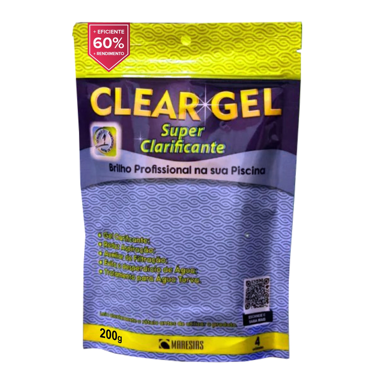 A embalagem com 8 unidades de Clear Gel trata até 320.000 litros de água.